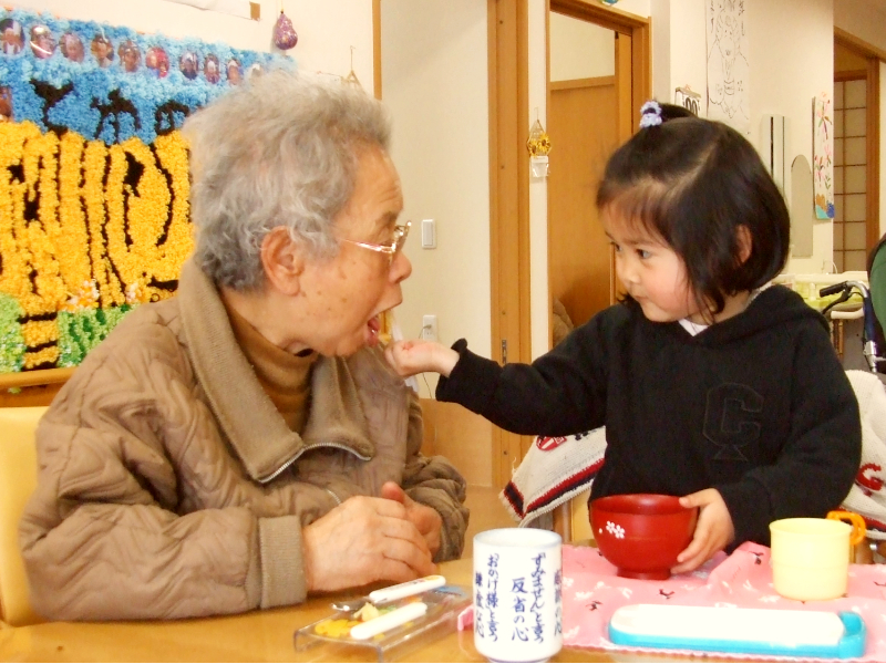 お子さんを伴っての出勤も可能です。施設では、ご利用者様もまるで孫のように接しています。たくさんの人とのふれあいを通して、健やかに時間を過ごせる環境です。